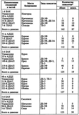 Таблица б. Боевой состав советской дальнебомбардировочной авиации на западных рубежах по состоянию на 1 июня 1941 года.