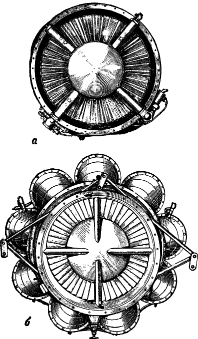 Рис. 47. Так выглядит турбореактивный двигатель, если смотреть на него спереди и сзади: