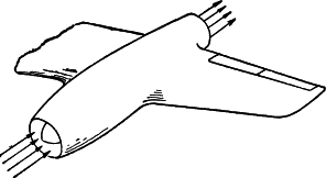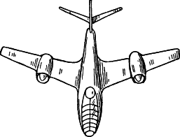 Вот летит скоростной реактивный бомбардировщик. На его крыле хорошо видны длинные сигарообразные тела с как будто срезанными концами (рис. 7). Это гондолы; в них установлены турбореактивные двигатели, которые создают тягу, необходимую для полета реактивного самолета.