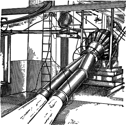 Рис. 20. Испытание турбореактивного двигателя в положении, соответствующем взлетному