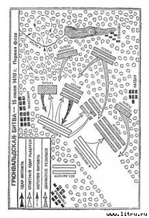 Но у великого магистра еще оставался мощный резерв – шестнадцать хоругвей, которые он теперь бросил в бой. Три хоругви ударили внезапно на польский отряд, вклинившийся между полками Лихтенштейна и Валленрода, а тринадцать других были посланы в глубокий обход, чтобы со стороны Тенненберга зайти в тыл неприятельскому войску, большая часть которого при удаче этого маневра оказалась бы в мешке. Но в успехе великий магистр не сомневался: помешать этому движению могли бы только полки Витовта, а они были разбиты и рассеяны по лесу.