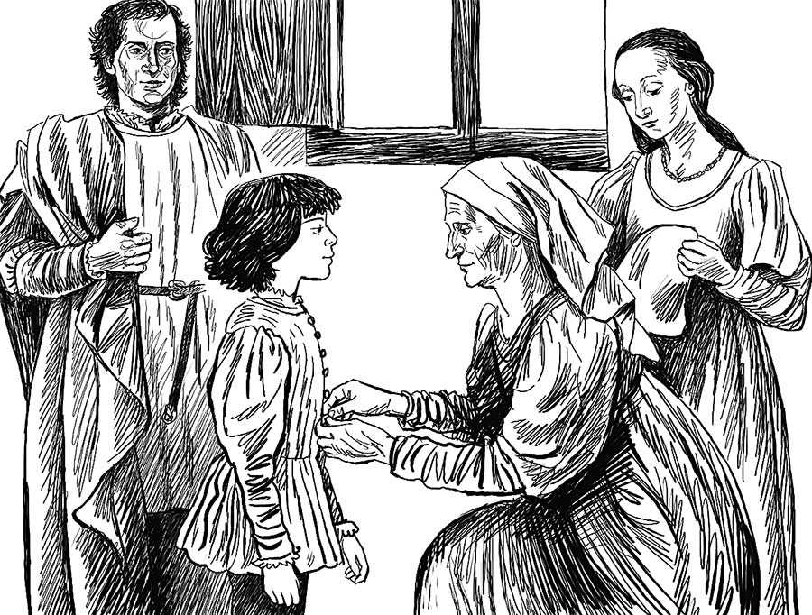 Служанка, пришивая пуговку к парадному камзолу маленького Рафаэля, подняла старые, подслеповатые глаза на синьору Санти, которая расправляла смятую парадную шапочку мальчика.
