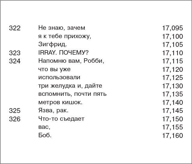 так, говорю какую-нибудь крайне болезненную истину тоном, каким просят воды или коктейль на праздничной пирушке. Я так делаю, когда хочу предотвратить приступ, хотя не думаю, чтобы это срабатывало. Ведь в Зигфриде масса устройств хичи. Он гораздо совершеннее, чем машины в институте, где меня впервые лечили.Зигфрид постоянно контролирует все мои физические параметры: проводимость кожи, пульс, бета-активность и все прочее. Он получает данные о натяжении ремней, удерживающих меня на матраце, – это показывает, насколько яростно я вырываюсь. Он измеряет громкость моего голоса и сканирует все обертоны. И к тому же понимает смысл слов. В общем, Зигфрид исключительно умен, особенно если принять во внимание, насколько он глуп.