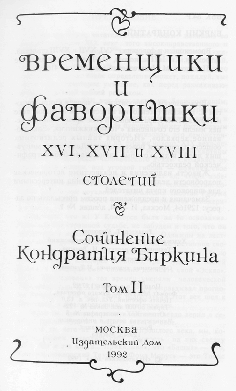 «Временщики и фаворитки» — трилогия К. Биркина (псевдоним известного в прошлом веке историка П.П.Каратыгина). В ней рассказывается о людях, волею судеб оказавшихся приближенными к царствовавшим особам русского и западноевропейских дворов XVI–XVIII веков — временщиках, фаворитах и фаворитках, во многом определявших политику государств. Эта книга — о значении любви в истории. ЛЮБОВЬ как сила слабых и слабость сильных, ЛЮБОВЬ как источник добра и вдохновения, и ЛЮБОВЬ, низводившая монархов с престола, лишавшая их человеческого достоинства, ввергавшая в безумие и позор.