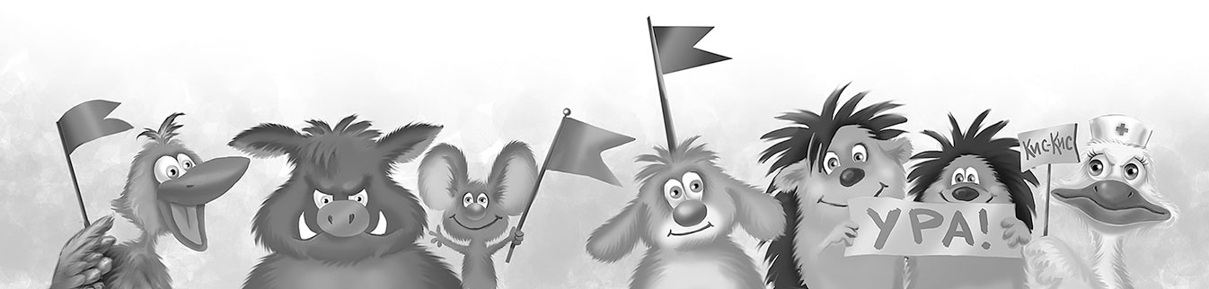 Тут все звери повскакивали со своих мест и бросились к победителям. Принялись поздравлять, жать лапы. Все пытались поговорить со спортсменами. Даже Ворон, и тот растолкал толпу и вызвал Кис-Киса на так называемый «важный разговор». После чего победителей подняли на лапы и стали подкидывать в воздух. А потом с громкими криками «ура» понесли по лесу.