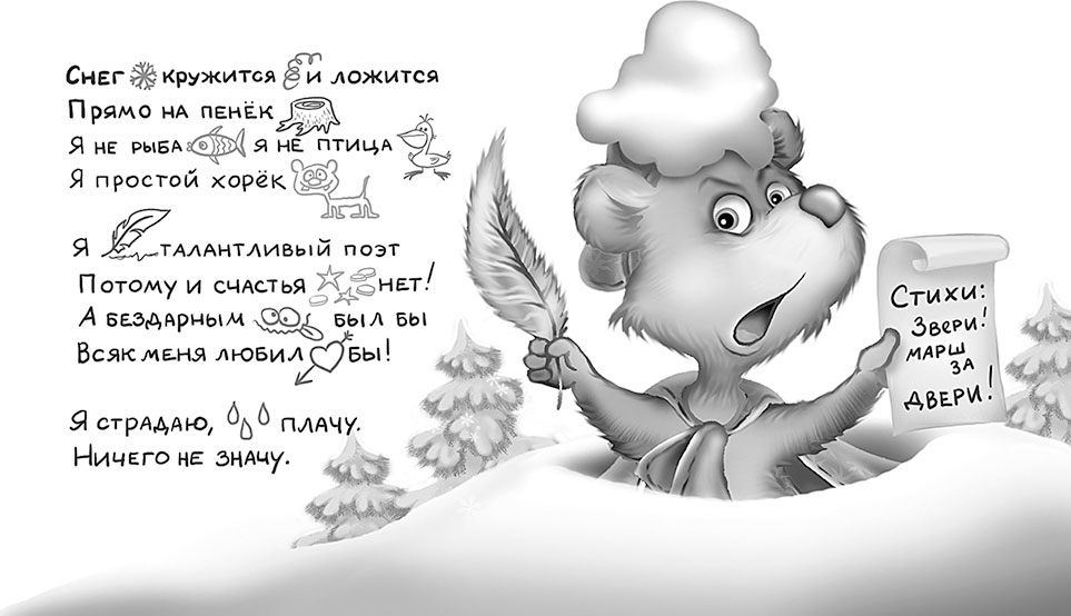 Но никто и не думал никуда выглядывать! Звери старались изо всех сил, шутили и даже пели. Только Вольгеруху