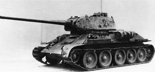 Т-34-85 завода «Красное Сормово». Промежуточная модель, сохранившая часть характерных деталей ранних сормовских машин — смещенный вперед наружный топливный бак и рымы из прутка.