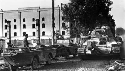 «Ровно в 2 часа 30 минут я передал всем частям сигнал к наступлению „555“, — вспоминал командир 2-го гвардейского танкового корпуса генерал А.С. Бурдейный. — Через десять-пятнадцать минут каждый командир доложил: „Наступление начал“. Широкой полосой — десять километров по фронту — танковый корпус шел к Минску. В предрассветной мгле раздавался лязг гусениц, далеко вокруг разносился гул моторов. Все всматривались в дымку на западе: как встретит нас противник под стенами многострадального города?»