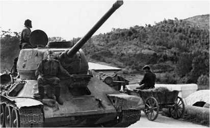 Советские танки в горах Трансильвании. 2-й Украинский фронт, Румыния, лето 1944 года. Это машина ранних выпусков, о чем можно судить по пушке С-53, отсутствию бонок для крепления запасных траков на лобовой броне корпуса и приборам наблюдения МК-4 без крышечек.