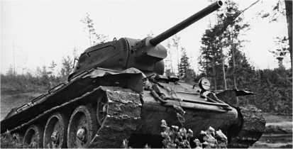 Т-34-85 позднего выпуска 1944 года. Нештатные грязевые щитки установлены, видимо, в ходе ремонта. Довольно редкий снимок, на котором хорошо видны полностью открытые «ресницы» — броневые крышки призм приборов наблюдения механика-водителя.