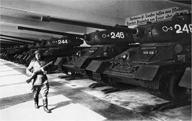 «Тридцатьчетверки» в бывшем немецком парке. Германия, август 1946 года.
