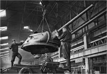 Сборка танков Т-34 в цеху завода № 112 «Красное Сормово». Август 1942 года.