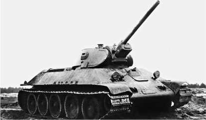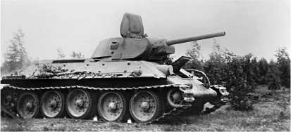 Танк Т-34 производства СТЗ выпуска конца 1941 года с цельносварными опорными катками и необрезиненным направляющим колесом.