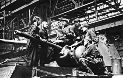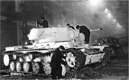 Рабочие завода «Серп и молот» за ремонтом танка КВ-1. Москва, 1942 год.