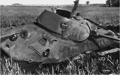 Завязшие на заливном лугу и брошенные экипажами Т-34 довоенного выпуска. Западный фронт, июль 1941 года. Пойма р. Друть под Толочином.