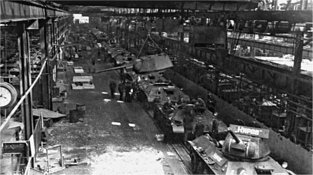 Сборочный конвейер на заводе № 183 в Нижнем Тагиле. 1942 год.