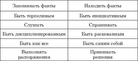 Можно было бы таблицу продолжить, но принцип ясен. Запад, как вы догадались, учит действовать, а Восток – размышлять.Причем американцы учат действовать, опираясь не на чувства, а на факты. Отсюда – культ