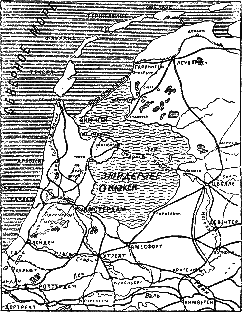 Голландцы ведут с морем не только оборонительную борьбу, но и наступательную. Они не только защищают свое побережье от яростных натисков моря, но завоевывают у моря новые пространства. Так, семьдесят пять лет тому назад; они высушили обширный морской залив, так называемое Гаарлемское море, имевшее более 25 километров в длину. А в настоящее время голландцы осуществляют вот уже несколько лет другой, еще более грандиозный проект — осушение так называемого Южного моря или Зюдерзее.