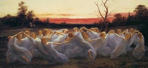 Angsalvor – танцующие эльфы. С картины Нильса Бломмера. 1850 г.