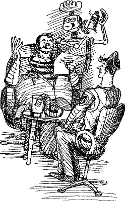 Знаменитий робот Малюк дивився на громоподібного капітана Козира закоханими ліхтарями, що йому анітрохи не заважало із спритністю досвідченого бармена збивати добірні коктейлі. Оцю животворну суміш капітан смоктав крізь товстенний нейлоновий шланг, який менш героїчні натури використовують хіба що під час небезпечних протипожежних робіт.