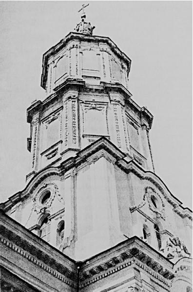непродышным смрадом.И. Зарудный. Церковь Архангела Гавриила (Меншикова башня), летняя, в Патриаршей Гавриловой слободе (в Телеграфном переулке). 1701–1707 гг. Фрагмент. Фото 1970-х гг.