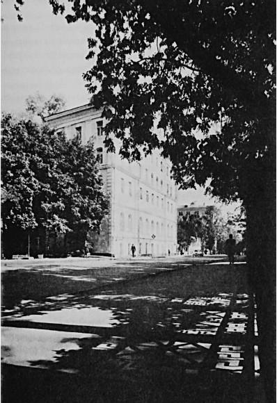По той же стороне, несколько дальше, стоит в глубине, за красивой оградой, отличных пропорций дом, не упоминаемый ни в одном справочнике и путеводителе. Там находится научно-техническая библиотека.