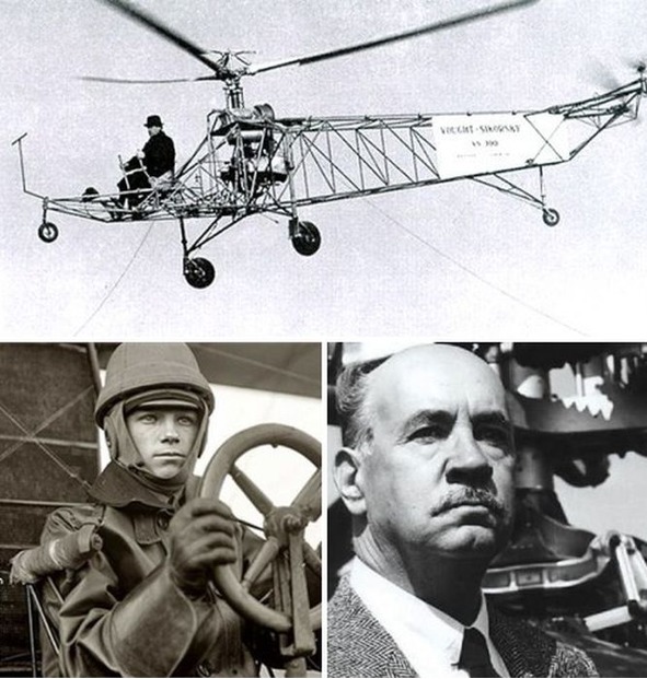 (верхнее фото) Вертолёт И. Сикорского. (внизу слева направо Игорь Сикорский в 19 лет. Русский и американский авиаконструктор Игорь Иванович Сикорский.