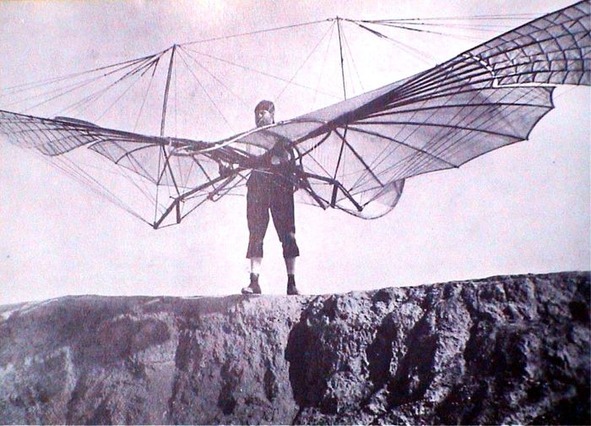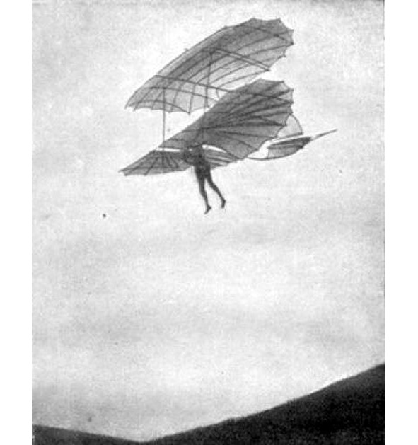 В 1891 году крылья из ивовых прутьев и полотна испытал Отто, бросившись с возвышенности против ветра.