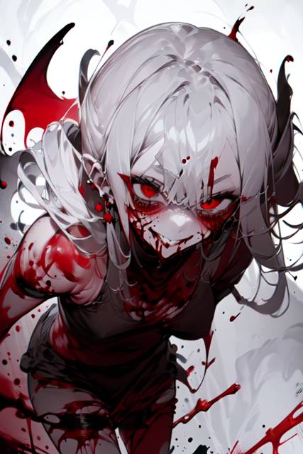 — Ну привет… — томно выдала мне ещё одна… Кхм, пусть мягко будет «демоница». С виду молодая невысокая девушка, но бледная как сама смерть, мало того, почти вся она была в алой крови. Та стекала с неё подобно поту и заменяла даже слюну во рту. Кровь буквально витала вокруг неё, словно позабыв о гравитации.