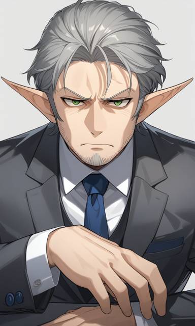 Впервые его вижу. Не могу так сразу сказать насколько дочь на него похожа, но факты сходятся. Глаза такие же зелёные, уши такие же длинные, эльфийские. Но седой настолько, что уже серый весь. И очень-очень уставший. Под глазами мешки, волосы немного растрепанные, щетина довольно длинная, пусть редкая.