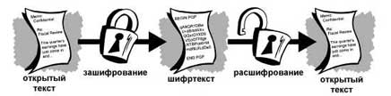 Информация, которая может быть прочитана, осмыслена и понята без каких-либо специальных мер, называется открытым текстом (plaintext, clear text). Метод искажения открытого текста таким образом, чтобы скрыть его суть, называется зашифрованием [2] — (encryption или enciphering). Зашифрование открытого текста приводит к его превращению в непонятную абракадабру, именуемую шифртекстом (ciphertext). Шифрование позволяет скрыть информацию от тех, для кого она не предназначается, несмотря на то, что они могут видеть сам шифртекст. Противоположный процесс по обращению шифртекста в его исходный вид называется расшифрованием (decryption или deciphering) [3] .