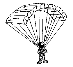Наполнение парашюта воздухом тем методом, который был использован раньше (пилот стоит лицом вперед, а парашют на земле за ним), становится трудным при таком ветре. Существует момент, когда купол, более или менее надутый, начинает подниматься сзади вас под почти прямым углом к земле, подставляя всю свою поверхность