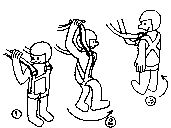 (Конечно, вы можете точно так же повернуться кругом направо, провести левые тяги над своей головой левой рукой. Это вопрос личного выбора).