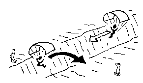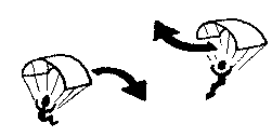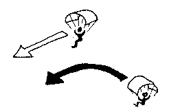 Этот левый поворот дает уверенность в том, что парашют, который уступает дорогу, будет лететь в том же направлении, что и другой парашют, когда они окажутся ближе и, таким образом, они избежат лобового столкновения: