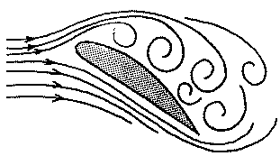 Это называется ПОТЕРЯ СКОРОСТИ. Пока мы наклоняли наш профиль все к большим углам атаки, воздух должен был проходить через вершину крыла все больший и больший путь, и путь этот должен был становиться все более кривым. В какой-то точке, обычно между 15 и 20 градусов, воздух уже не в состоянии двигаться так, он разбивается на турбулентные вихри — это явление называется турбуленцией — и прекращает обеспечивать подъемную силу, оставляя нас наедине с силой сопротивления воздуха. На практике, если потеря скорости происходит на большой высоте, вы вновь набираете ее в результате погружения и возвращаетесь опять к нормальному полету, потеряв часть высоты и испытав учащенное сердцебиение. Но на более низких высотах вы можете нырнуть в землю прежде, чем наберется подъемная сила. Потеря скорости — это одна из первых вещей, которых вас научат избегать на курсах параглайдинга.