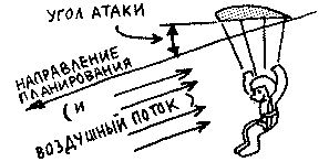 Наблюдая со стороны за глайдирующим парашютом, вы замечаете, что его купол имеет отрицательный угол по отношению к горизонту, т. е. передняя кромка