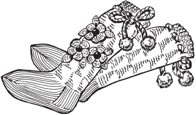 Связать из отделочной пряжи желаемое количество мелких цветочков и пришить сбоку каждого гольфа, самостоятельно составляя композицию. При желании композицию дополнить листиками (рис. 37).