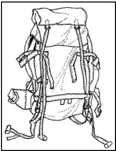 • Портативная горелка (примус), емкости с топливом и прочие предметы, необходимые на марше, укладываются в боковые карманы рюкзака, с тем чтобы их можно было достать, не снимая рюкзак со спины.