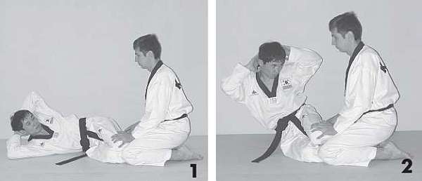 Техника выполнения: упражнение выполняется в паре с партнером. Исходное положение аналогично исходному положению, описанному в 11-м упражнении.