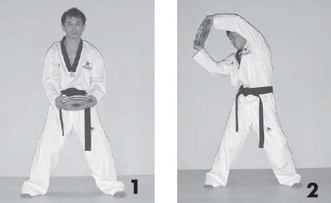 б) из исходного положения, с грузом на руках, выполните удары снизу вверх, чередуя положение рук и ног.