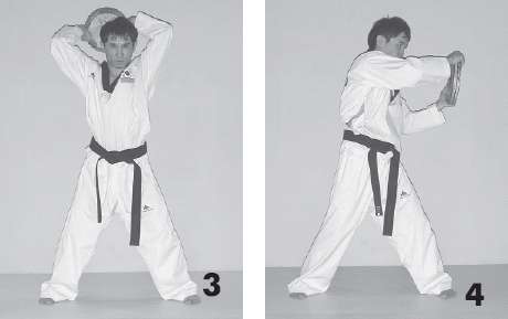 а) из исходного положения, с грузом в руках, выполните боковые удары, чередуя положение рук и ног;