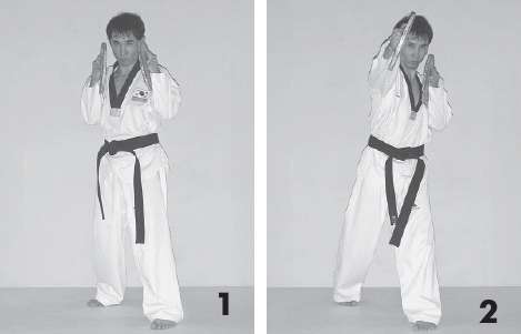 Из этого положения выполните прямой удар рукой вперед. Темп выполнения быстрый. Количество повторений 15–25 раз в одном подходе. Чередуйте выполнение ударов, меняя положение рук и ног. Упражнение можно выполнять как на месте, так и с продвижением вперед или назад.