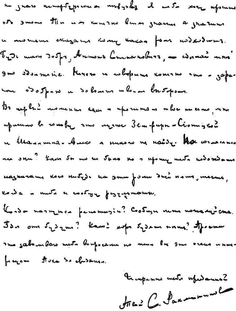 Это Рахманинов пишет Аренскому!