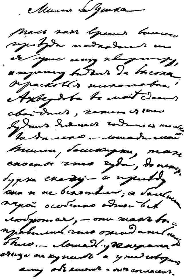 «Милая бабушка, так как время вашего приезда подходит, то я уже ищу квартиру и карету видел, да высока…»