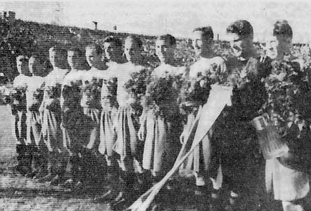 Вручение диплома 1-ой степени В. Николаеву в 1946 году.