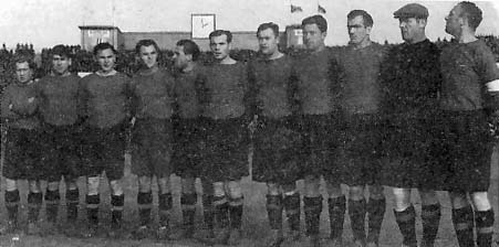 Состав команды. Справа налево: Г. Федотов – капитан команды, В. Никаноров, Ю. Нырков, А. Башашкин, В. Чистохвалов, В. Бобров, А. Водягин, В. Соловьев, И. Кочетков, В. Николаев, В. Демин.