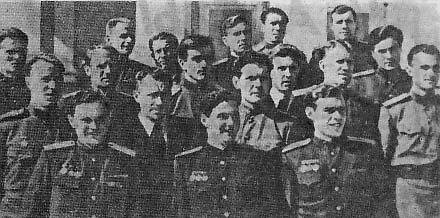 Слева направо; нижний ряд: В. Николаев, В. Соловьев, В. Чистохвалов. Средний ряд: А. Петров, А. Гринин, Б. А. Аркадьев, Ю. Нырков, В. Никаноров, А. Башашкин, Г. Федотов, А. Крушенок, А. Водягин. Верхний ряд: В. Чайчук, Б. Коверзнев, В. Демин, А. Зайцевский, В. Елизаров и В. Чанов.