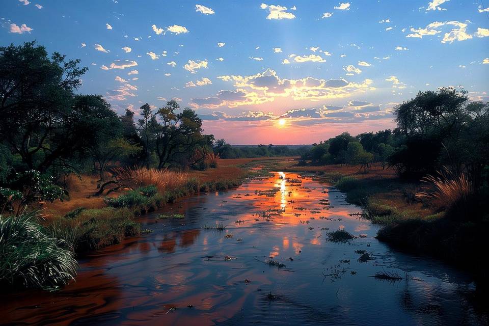 Я повернулся к реке и на секундочку застыл, наслаждаясь видом. Мягкое, закатное солнце играло и в небе, раскрашивая облака в розовые оттенки, и отражалось в медленной, словно застывшей речке. Посмотрим, что там будет дальше — но здесь вода была чистой и прозрачной, а дно ровным и гладким. Удивительно, как в таком красивом мире, столько всего того, что обязательно придет тебя съесть.