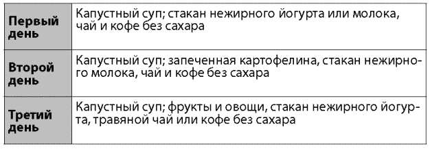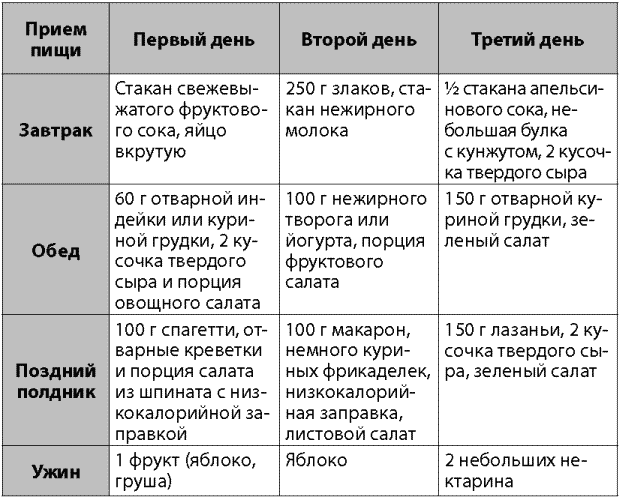Главный принцип – постоянный контроль объема порций. На случай стремительного избавления от 2–3 кг лишнего веса у певицы есть одна диета, которая работает безотказно. Она рассчитана всего на три дня, но этого времени достаточно, чтобы влезть в любимое платье или юбку (табл. 11).
