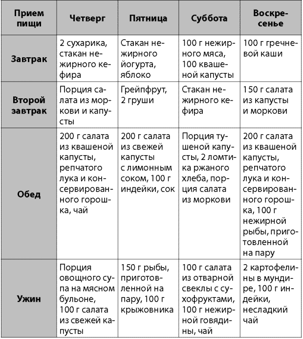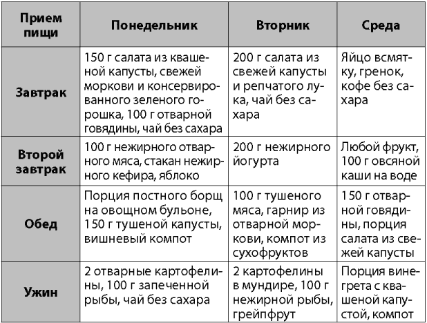 Примечание. В таблице приведен суточный рацион; его нужно разделить на 5–6 приемов пищи.